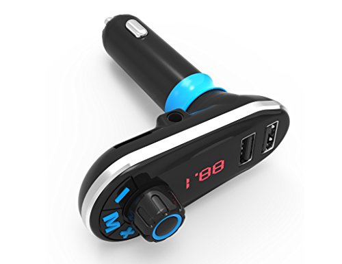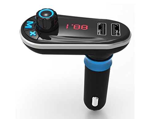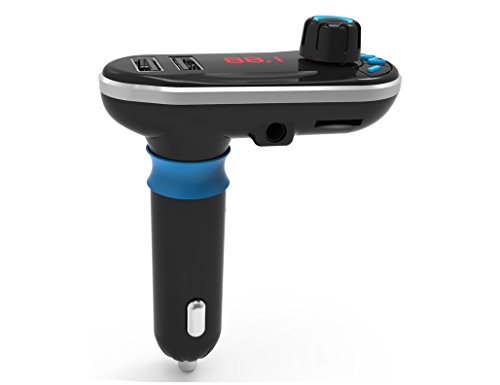 This is an upgraded Bluetooth car FM transmitter, which allows you to play music from your phone, USB flash disk and TF card. With built-in mic, it also can make hands-free calls for safe drive. Two USB charging ports let you charge your phone and tablet.