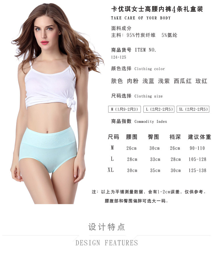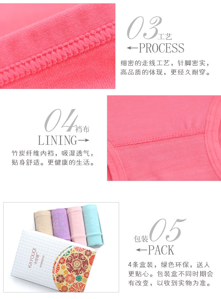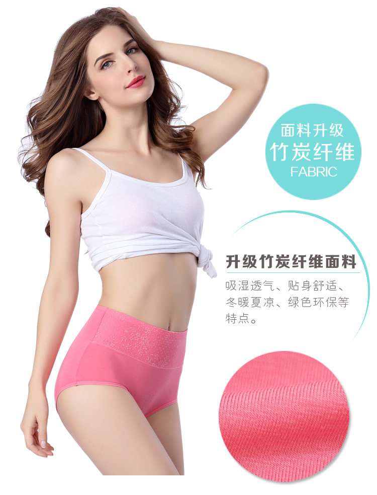 4条盒装竹炭纤维高腰收腹提臀女士内裤衩中腰三角裤头比纯棉柔软