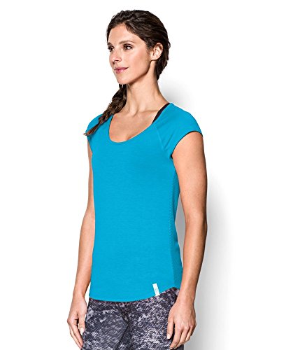 Soft, ultra-lightweight fabric delivers superior breathability and incredible comfort. Signature Moisture Transport System wicks sweat to keep you dry and light. Ergonomic flatlock seams allow you to move free without fear of chafing. Large, open-hole performance mesh back panel for unrivaled breathability. Raglan sleeves unlock mobility for serious range of motion. Slight drop-tail detail for just the right amount of coverage. Feminine scoop neck front with large open keyhole back detail. 360° reflectivity offers extra safety during low-light runs. Polyester/Rayon. Imported.Feature