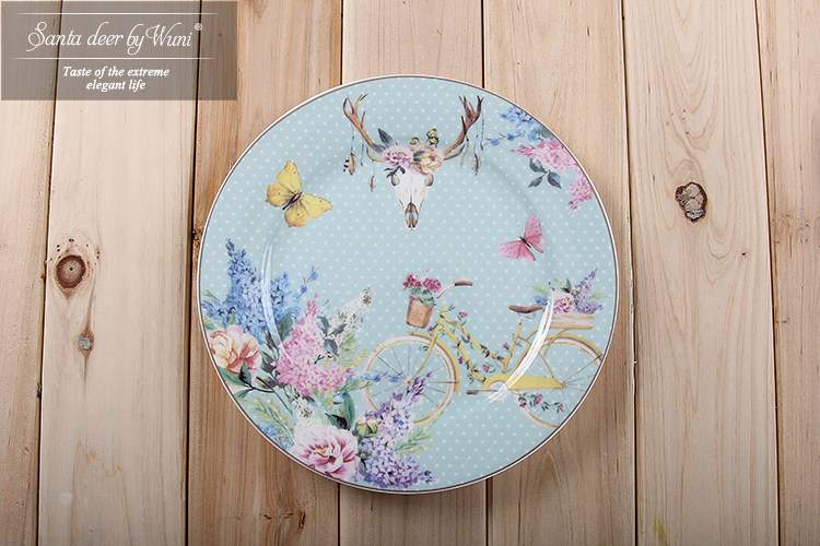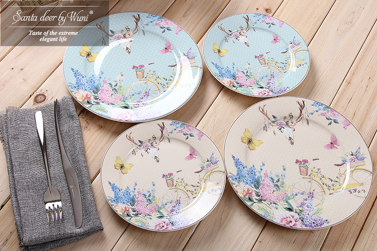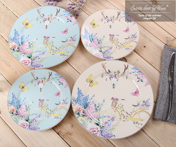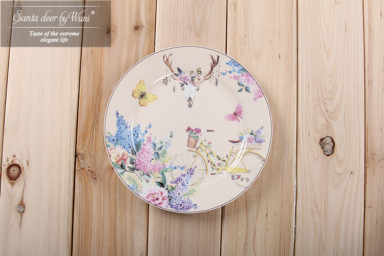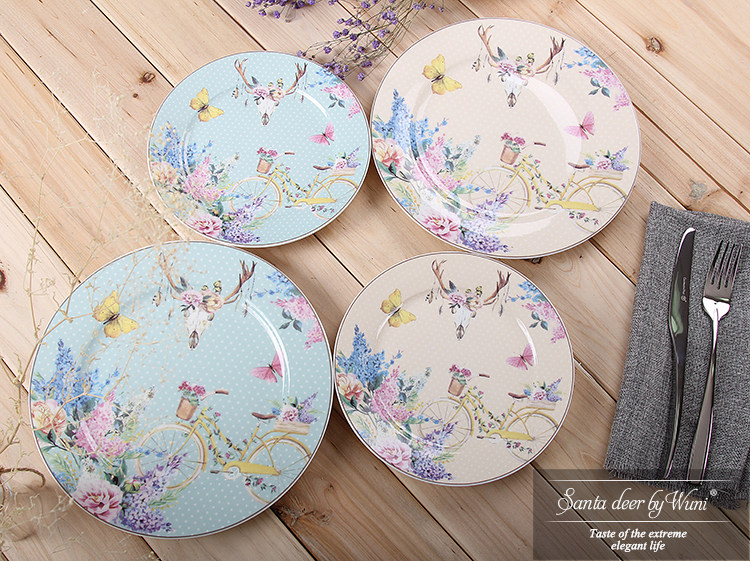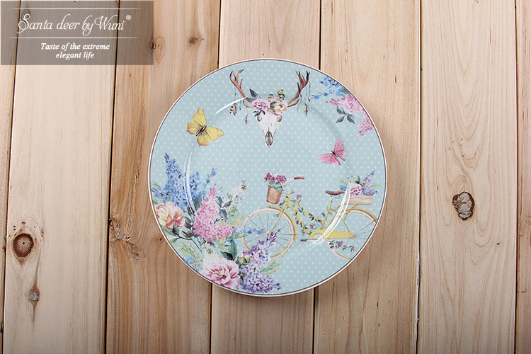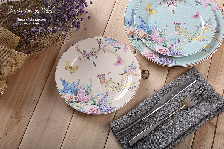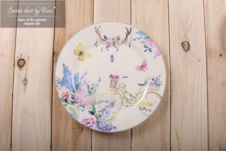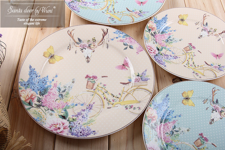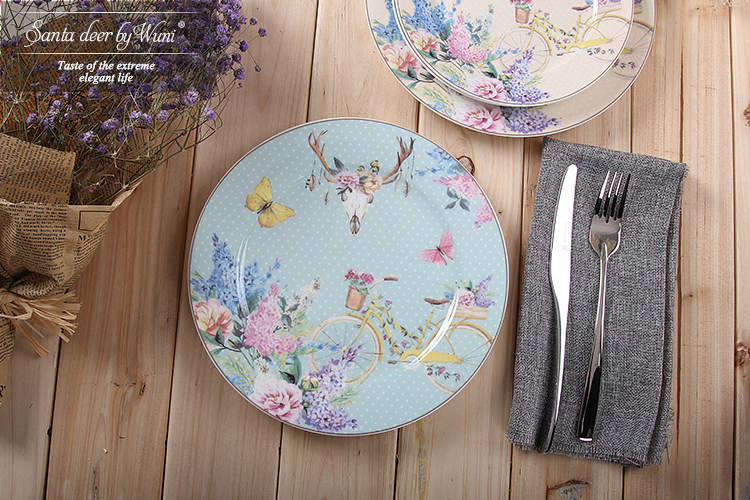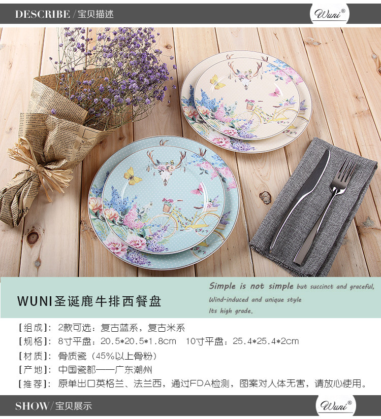 高档骨瓷欧式复古田园10寸西餐盘子 牛排盘8寸大平盘家用创意菜盘