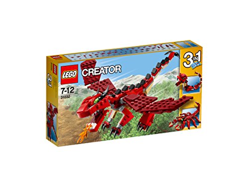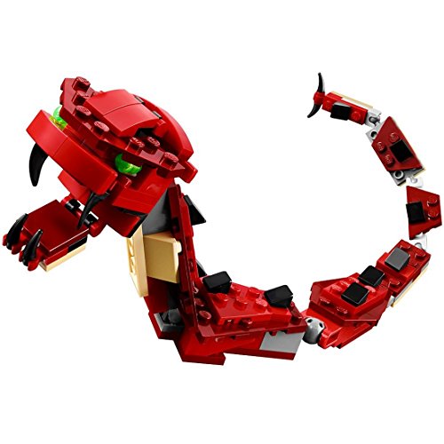 Take to the skies with the fearsome Red Creatures fire-breathing dragon! This awesome 3-in-1 model features a classic red, tan and black color scheme, large movable wings, long scaly tail, fiery breath, horns, long talons and bright green eyes. Stomp through forests and soar over huge mountains! When you're done creating legendary tales, rebuild the dragon into a menacing snake or a 6-legged scorpion.