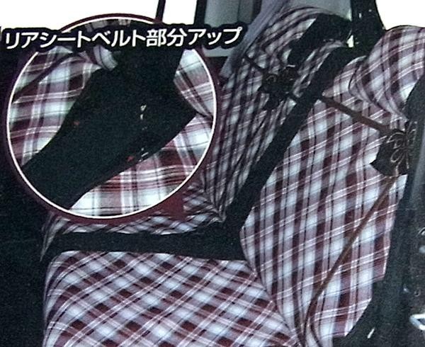 | シートの上からかぶせるだけで簡単に取り付けできます。マジックテープで留めるだけで固定できるNEWタイプのシートカバー。お洒落なリボンが付いて車内をドレスアップします。 |