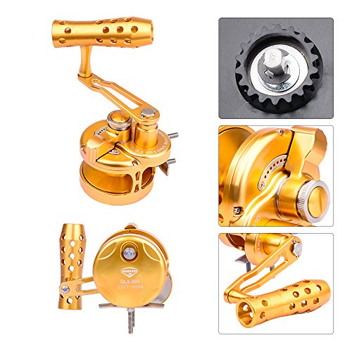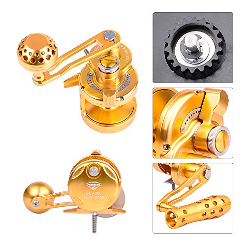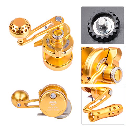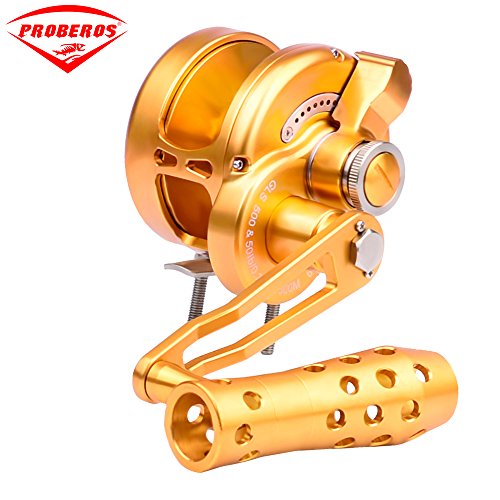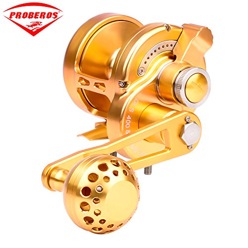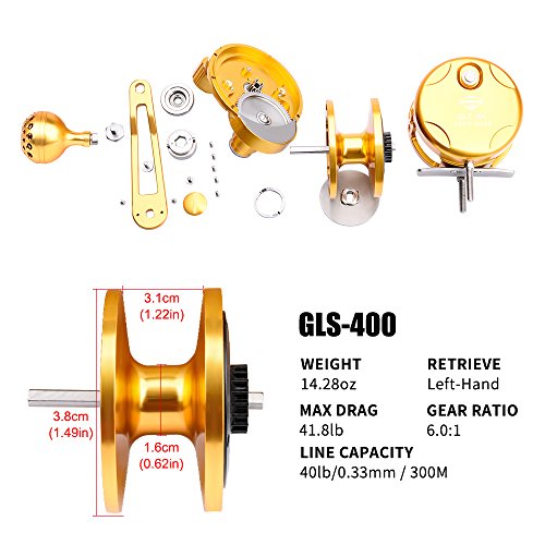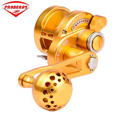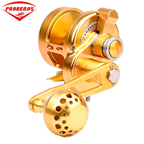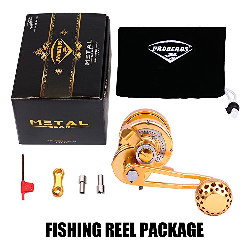 Studio : Proberos Publisher : Proberos Binding : Misc. Product Description FEATURES: One-hand manipulation drag setting design Precision CNC machined from a solid block of Aircraft Grade Aluminum Superior drag technology for exceptionally smooth, strong, and reliable drag 8 stainless steel ball bearing, 1 stainless steel anti-reverse bearing, and 2 docking gears design Gear ratio of 6.0:1 for optimized gear rotation and torque Excellent free spool Unique DG anti-reversal / dual docking design to minimize pressure on the main gear and bearing for superior longevity Weather, rust, and scratch resistant anodized surface treatment Equipped with power handle and ergonomic CNC aluminum cranking T-Bar Washing instructions: Wash the exterior with fresh water and wipe clean after use Product Detail: GLS200-500 Color:Gold Gear Ratio: 6.0:1 Reel Type: Conventional / Lever Drag Spool Diameter:48mm(GLS200)/54mm(GLS300)/54mm(GLS400)/64mm(GLS500) Spool Width:48mm(GLS200)/54mm(GLS300)/54mm(GLS400)/64mm(GLS500) Gross Weight:368g-13oz(GLS200)/402g-14oz(GLS300)/447g-15.7oz(GLS400)/485g-17oz(GLS500) Line Capacity: GLS20025lb / 0.23mm / 300M GLS30035lb / 0.3mm / 300M GLS40040lb / 0.33mm / 300M GLS50050lb / 0.36mm / 300M Effective Drag:14KG(GLS200)/16KG(GLS300)/19KG(GLS400)/21KG(GLS500) Package Includes: Reel, Power Handle, T-Bar, Tool, Manual and Proberos Reel Sack Manufacturer: Proberos