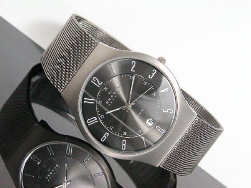 실버 모자 스카《―겐》 SKAGEN 울트라 슬림 티타늄 쿼츠 손목시계 233XLTTM 블랙