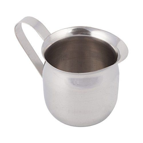 Studio : FortheChef Publisher : FortheChef Product Description This 5-ounce classic bell creamer elevates your morning coffee or afternoon tea. Ergonomically designed, the sturdy handle enables easy pouring and serving. A round, tapered drip-free spout ensures a consistently smooth pour. With its mirror-finished stainless steel construction, this creamer pitcher is rust and corrosion resistant and will not chemically react with acidic food or liquid. The sleek, unmistakable mirror-finish is ready for use morning, noon and night 0