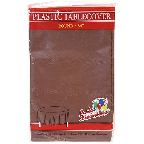 Studio : King Zak Industries, Inc. Publisher : King Zak Industries, Inc. Binding : Kitchen Product Description Party Dimensions Chestnut 84" Round Plastic Tablecover, Single count. Also, complimentary dinnerware for this color can be found in either Plastic: Plates, Bowls, Cups or Paper: Plates, Cups and Napkins. Designed for all occasions, banquets, dinners, parties, upscale catering and home. 0