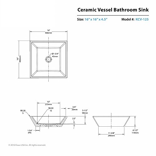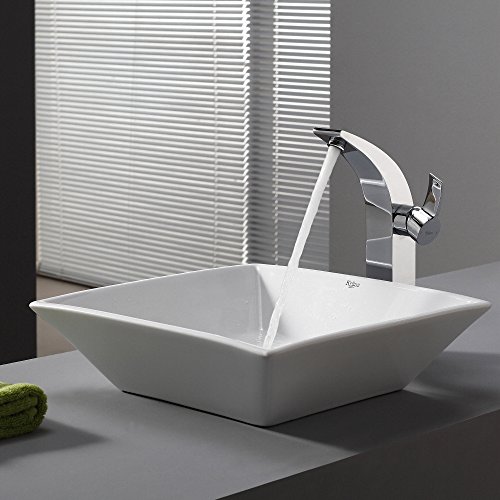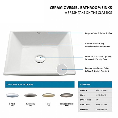 Kraus KCV-125 White Square Ceramic Bathroom Sink