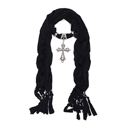-. Binding : Apparel -. Brand : TrendsBlue -. ClothingSize : One Size -. Department : womens -. Feature : Soft polyester fabric / One size: 68" x 20" / High quality and comfortable with soft fabric and unique rhinestone decorated medallion / A great accessory for everyday wear, and the perfect gift for all occasions and seasons / Available in different vibrant colors -. Model : SCSP6 -. ProductGroup : Apparel -. ProductTypeName : ACCESSORY -. Size : One Size -. Title : Elegant Cross Charm Pendant Jewelry Necklace Scarf - Diff. Colors Available