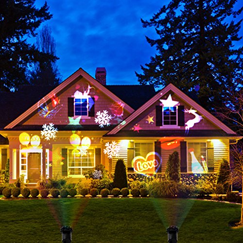 -. Feature : THE BEST CHRISTMAS LIGHTING SOLUTION. There is no need to think of the layout, just plug in and use right away. You no longer need to carry around a bunch of lights on a ladder and climb up and down. It's safer and more convenient. / EXTRA-LARGE COVERAGE. The largest area it can cover is the range of 20 x 20 square metres which means you just need to turn on the switch and you can make any house light up like a starry night. Make any tree into your Christmas tree! I'm sure you will start using it even before Christmas Day. / 16 KINDS OF DESIGNS. With 16 kinds of classic designs, perfect for all kinds of festivities, you can use the remote control to change their rotation and flashing speeds. Your friends will be amazed by the amazing lighting effects! / RADIO-FREQUENCY REMOTE CONTROL, compared with the infrared remote control, has the remote control distance and penetration capability that the infrared remote control simply can't compare to. You just need to lie on the sofa to control the your lights from inside instead of going out in the snow and operating them. / DOESN'T FADE. Compared with other similar products in the market, we have adopted a more expensive unfading raster film, it doesn't fade away because of prolonged exposure, and we hope this product will always bring color to your life.
