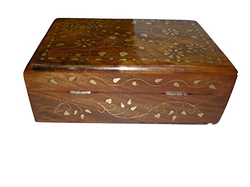 Special valentine day gift, Wooden Jewelry Box Rectangle Shape with Flower Inlay, Vintage Box, Brown Color Jewelry Box, Keepsake Box, Storage Box, Women’s Jewelry Organizer Box - 7 X 5"