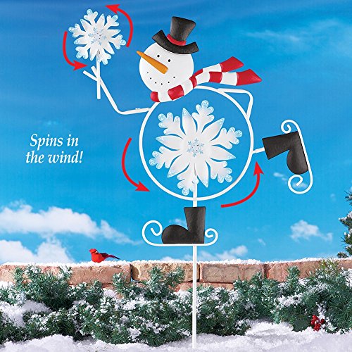 Studio : Collections Etc Publisher : Collections Etc Product Description Skating Snowman Wind Spinner Christmas Yard Stake Description This festive skating snowman wears a striped scarf, carrot nose and top hat while the snowflakes in the body and hand spin in the wind. Iron. 27"L x 45"H. No Risk Purchase, Hassle-Free Returns - 100% Satisfaction Guaranteed With customer satisfaction as our number one priority, we proudly offer a Satisfaction Guarantee for all of our merchandise and services. From our appealing merchandise and incredible values, to our friendly customer service, we strive to provide a positive shopping experience by meeting or exceeding your expectations.If you are not completely satisfied within 60 days of your purchase (see return policy for details).