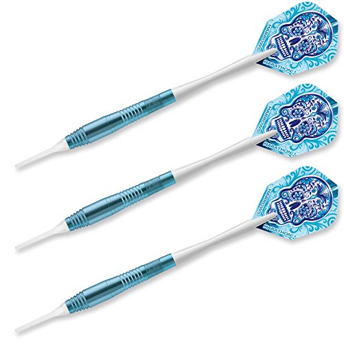These toughened alloy darts feature a colorful silk finish in Purple, Blue, and silver complemented by the white speedline shafts and Marathon flights. A truly exotic style statement.