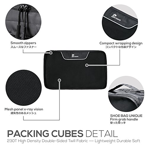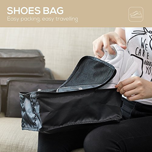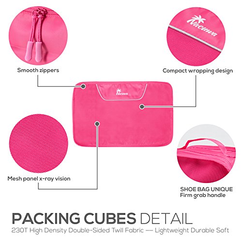 Studio : Nacuwa Publisher : Nacuwa Product Description Pack smart save space with this convenient 5-pack of organization cubes! This set is great for keeping your clean clothes, dirty clothes and even your shoes separate and easy to find! Three clothing storage cubes come in three different sizes and are breathable for optimal space saving, expanding and contracting. Forget rolling your clothes and fighting to get your suitcase to close, only to mess everything up upon arrival because you can't find what you need. With these packing cubes, you'll always know where your items are and how much you can and can't fit in your bag! Size: Clothes Storage Bag- Small: 8.6"×6.7"×3.1" Clothes Storage Bag- Medium:13.7"×8.6"×2.9" Clothes Storage Bag- Large: 17.7"×13.7"×4.7" Shoes Bag: 12.4"×7.4"×4.7" Wash Bag: 10.2"×5.9"×3.5"