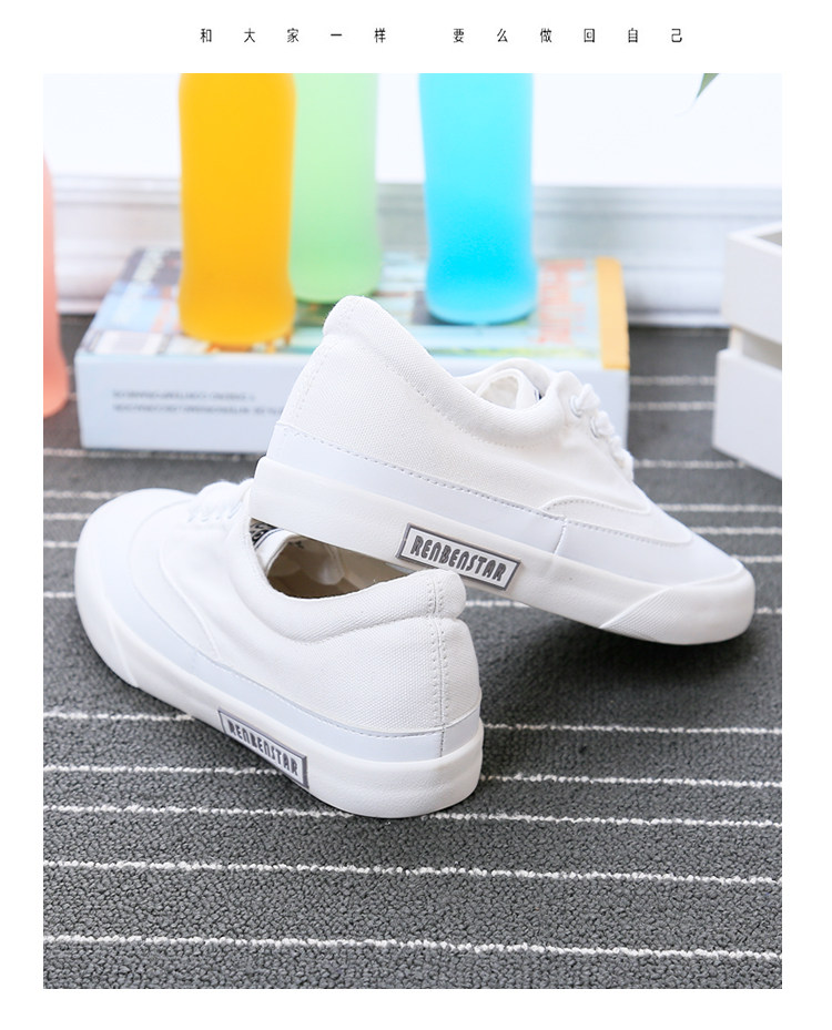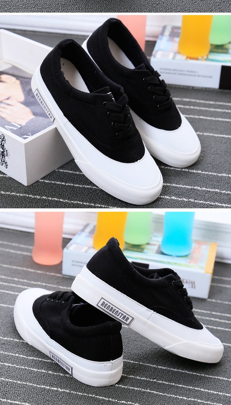 春季韩版帆布鞋女平底一脚蹬 懒人鞋女学生百搭帆布鞋系带潮