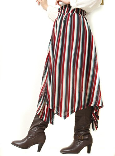 -. Title : 大きいサイズ レディース ウエストゴム フレア マルチストライプミモレ丈スカート 体型カバー