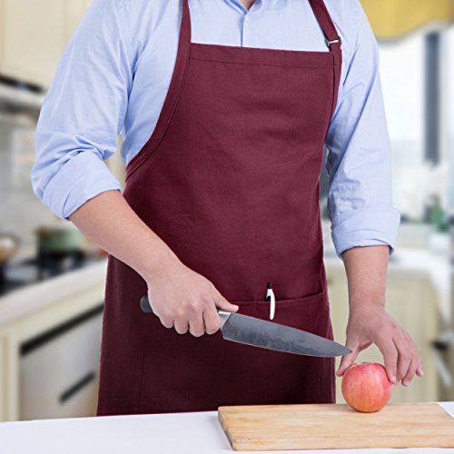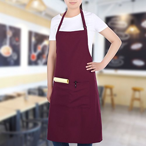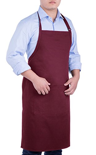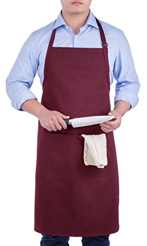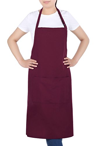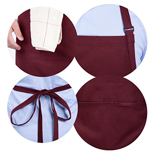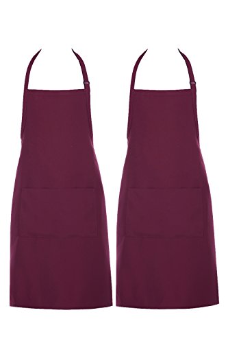 Chama Adjustable Neck Strap Long Tie 2 Pockets Bib Apron For Men Women Cooking Restaurant Bistro Craft Garden Half Aprons Chef Baker Servers Crafts --2 Pack (Burgundy)