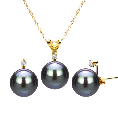 A beautiful 18k Yellow Gold Plated Sterling Silver 8-8.5mm Dyed-black Freshwater Cultured Pearl with .03ctw Diamond Pendant Necklace 18" Length with a Matching Stud Earrings Jewelry Set. Great for any occasion. Please Contact Us If You Do Not See What You Need.