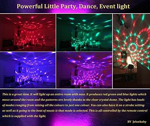 EASY OPERATION & REMOTE CONTROL - Just plug & play: Modeling concise, dome lamp design with bracket, the top its like the half of a little ball kind on hard plastic material but really durable. The sensitivity remote makes it very convenient. You can switch between different modes in the distance.Fully adjustable movement speed. It not only uses for the indoor environment, but also creates a decent and awesome light show for professional DJ and small lighting company.