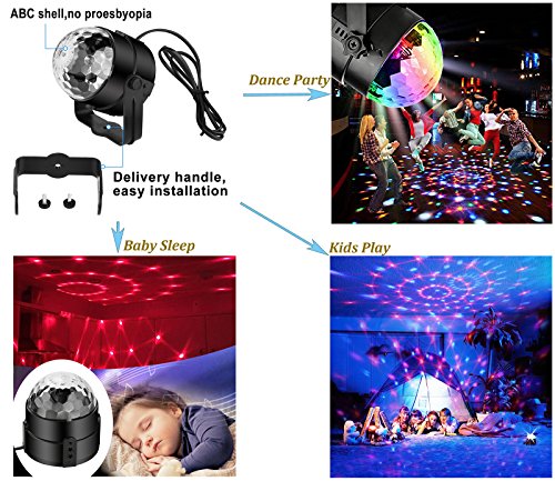 GLITTER BALL PLAY MODES - Sound Activated/Automatic/Flash light. Voice mode: a perfect mode for any parties, LED Lights will dance to the rhythm of the music. It’s a great karaoke machine or music equipment. Auto mode: automatically changing colors after you plug in without switching any button. Flash mode: lights can flash, appeared or disappeared quickly as the music rhythm changes. Under the charming music effects and high energy atmosphere, enjoy the crazy with your friends.