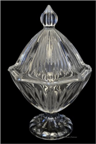 Product DescriptionFooted Covered Candy Dish; Lead-Free Crystal; Cut Crystal Pattern; Gift Boxed; 9" H x 5 1/2" D0