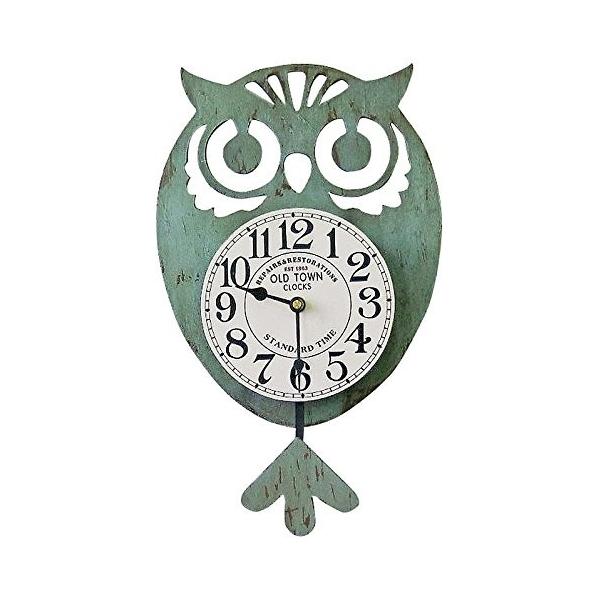 ふくろう 振り子 掛け時計 グリーン MJH-0492