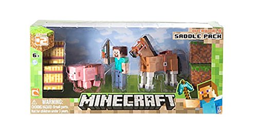 Now you can create, build and customise your own world of Minecraft with these highly detailed and fully articulated 3" scale action figures with accessories. Steve Articulated Figure with Whip Horse and Saddle articulated Figure Pig and Saddle articulated figure 2 x Hay Bale 2 x Grass Block