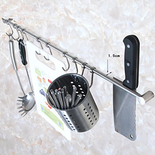 Yunzhicheng Stainless Steel Gourmet Kitchen Wall Mount Rail with Movable Hooks Set Utensil Pot Pan Lid Rack Storage Organizer (7 Hooks Length:15.75")