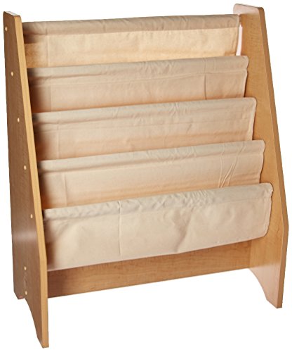 Soft canvas shelves keep books from being damaged.