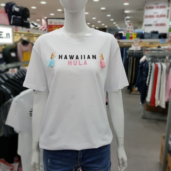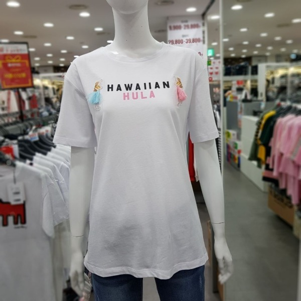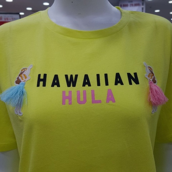 여성용 하와이안 프린팅 태슬 반팔 티셔츠 입니다^^시원하면서 가벼운 소재감의 여성용 반팔티셔츠입니다.프린팅 양쪽에 컬러 태슬장식으로 포인트를 주었으며힙?살짝덮는 기장감으로 앞단을 살짝 바지속으로 넣어서 입으셔도더욱 세련되고 스타일리쉬하게 코디해보세용^^