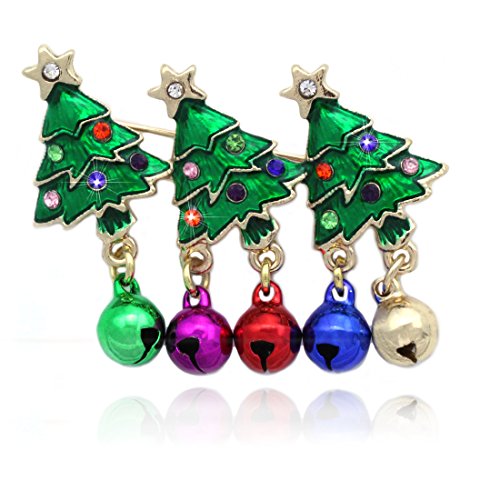 -. Feature : Christmas Bell Brooch with Colorful Bells / Stones / Color: Crystal / Clear and Red / Brooch Size: Approx. 1.375 Inch Wide (across the brooch), 2 Inch Long / (Please refer to the photo of this item being compared to the size of a quarter coin) / Lead Compliant, The Bells Make Jingle Sound
