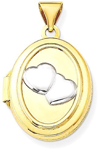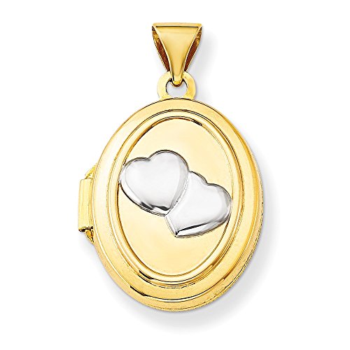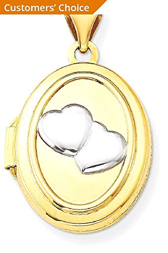ICECARATS DESIGNER JEWELRY 14K YELLOW GOLD 2 HEARTS 17MM OVAL PHOTO PENDANT CHARM LOCKET CHAIN NECKLACE THAT HOLDS PICTURES