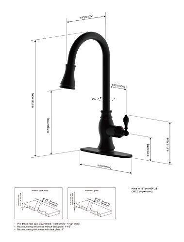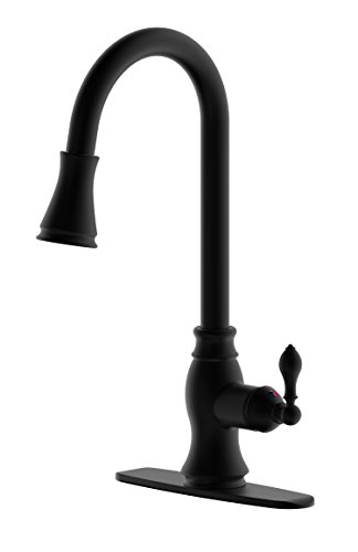 Derengge FK-258-MT Single Handle Pull Down Kitchen Faucet with Deck Plate ,cUPC NSF61-9 and AB1953 Lead Free Certification, Matte Black Finished
