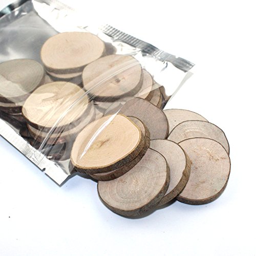 - Feature : Color: Wood color. Material: Pinewood. / Diameter: approx. 4-5cm. Thickness: approx. 0.5cm. / Pre-Sanded on both sides And Ready to Draw or Paint. / These natural wooden discs are surrounded with bark.Its natural shape and texture are almost different for each case. / Fantastic for table numbers, wedding decorative ideas and general crafting, create Unique Necklace and Keychains.