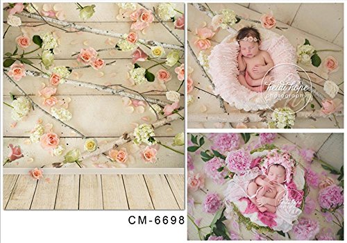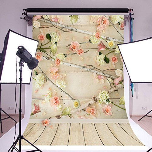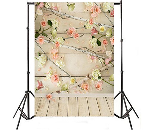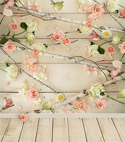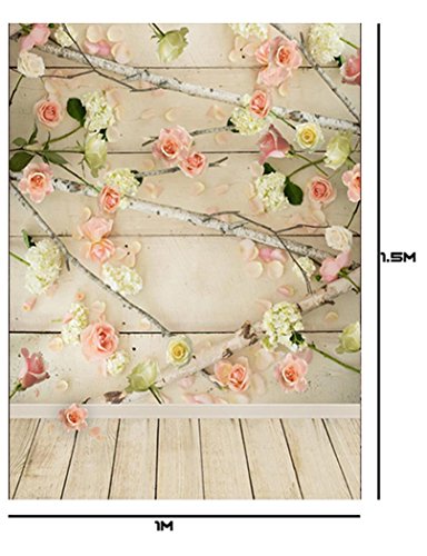 Laeacco 3x5ft Vinyl Photography Background Wood Floor and Wall with Flower Scene Backdrop Photo Studio Props