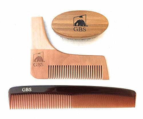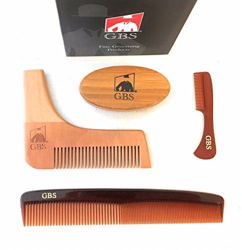 5 Piece GBS Beard Styling and Shaping Set For Precision and Perfect Lines. Oval Boar Bristle Brush, Unscented Beard Oil, Template, Mustache and Beard Comb with...
