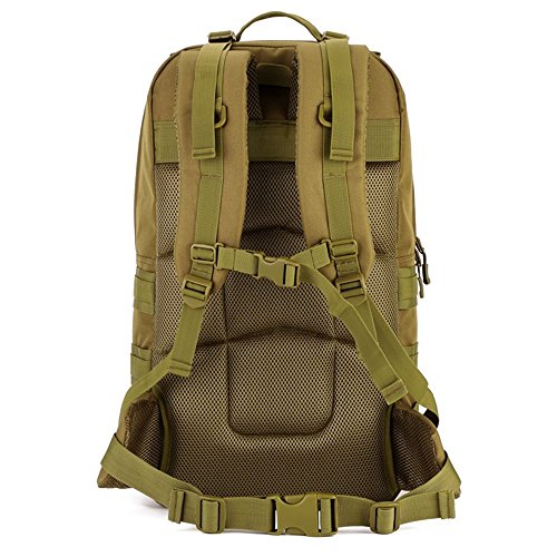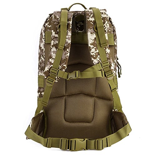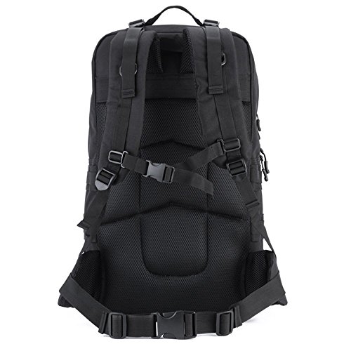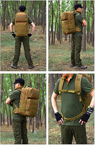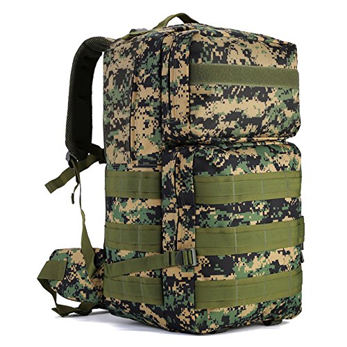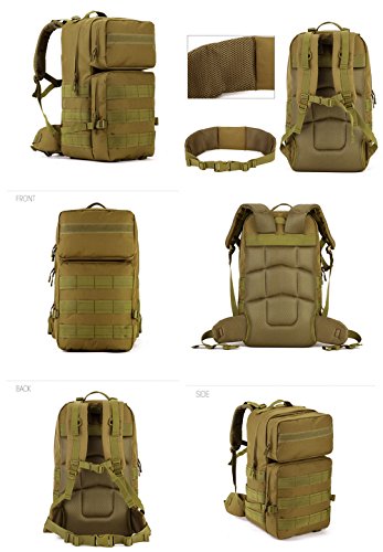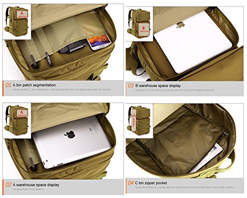-. Feature : Tactical Assault Backpack Capacity:55L. Size approx:22.83 * 12.99 * 6.69-9.84 in.Roomy main compartment with a multi-purpose pockets for Ipad 4,Ipad Mini,A4 Magazine,17" laptop,30 pieces of T-shirts ,Wallet,Mobile Phones and other travel items. / Comfortable design:Detachable belt with adjustable quick-release buckle,chest slide system control design.Adjustable shoulder and height sternum strap to ensure stability and reduce shoulder stress. / Elaborated bag For Multifunctional Use: with multiple pockets and compartments design, the 3 days backpack could be widely used for daily use or outdoor sport hiking camping trekking hunting. / Made of Waterproof and Wear-resistant Material: the Military Tactical Backpack is made of high -density durable nylon fabric with waterproof coating. / MOLLE System: MOLLE external expansion system designed to be used in combination with additional tactical pouches or gears, you can load pockets, water bottle bag, outdoor accessory gear,as bug out bag backpack, combat backpack.