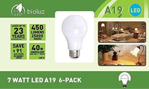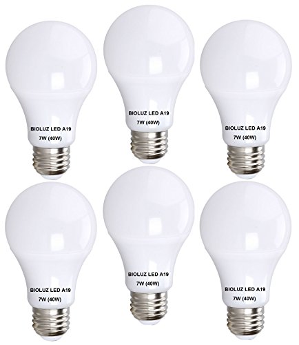 Bioluz LED A19 LED Light Bulbs 7w (40 Watt Equivalent) Premium Soft White (2700K) Light Bulb 6-Pack
