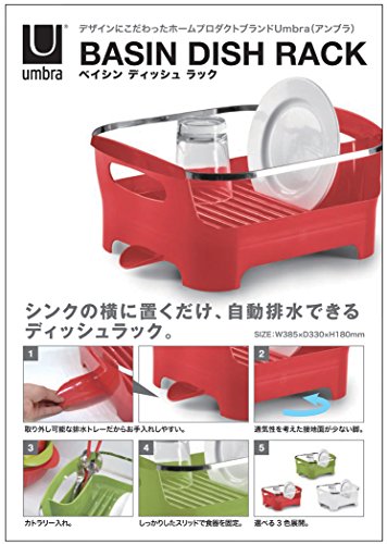 Umbra Basin Dish Drying Rack, Red