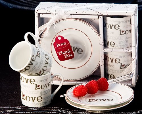 -. Binding : Misc. -. Brand : Artisano Designs -. EAN : 0630158999033 -. Feature : A gift for your one and only or all your wedding guests, this set will be the talk of the party, Great gift for valentines day, too! / Perfectly matching thank you tag is included along with coordinated display packaging finished with sheer organza ribbon and bow / Material: high quality porcelain / Packaged favor dimensions approx. 7" x 2 25" X 5 25" (18 x 6 x 13 5 Cm) -. Label : Artisano Designs -. Manufacturer : Artisano Designs -. Model : A92015 -. MPN : A92015 -. PackageQuantity : 1 -. PartNumber : A92015 -. ProductGroup : Home -. ProductTypeName : HOME -. Publisher : Artisano Designs -. Studio : Artisano Designs -. Title : Artisano Designs "Language of Love" Espresso Cup Favor Set -. UPC : 629254000880