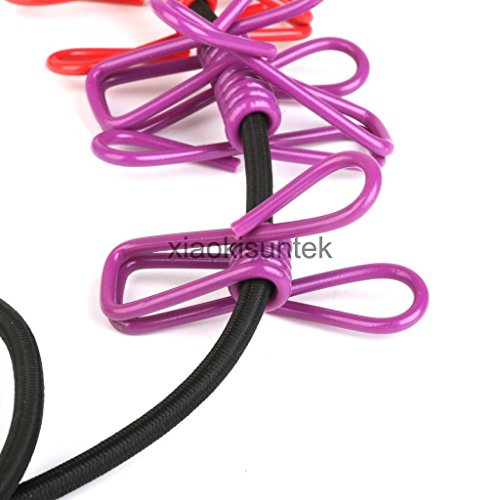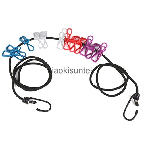 -. Feature : Foldable travel hanger, Skidproof design, hold clothes steady / Firmly fixed by screw at the turning point, Easy to expand, Lightweight and portable, convenient to carry for camping, travelling / Elastic clothesline with two hooks on both ends, portable and practical / The line made from high grade material, with strong pulling force, durable and long / lasting, Comes with 12 pegs, convenient for laundry outside Ideal for camping, hiking or other outdoor activities