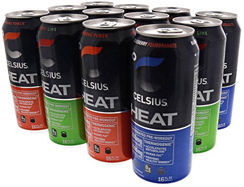 Celsius Heat Carbonated Thermogenic Pre-Workout for an Accelerated Metabolism and Healthy Energy 12/16oz Cans (Variety Pack)