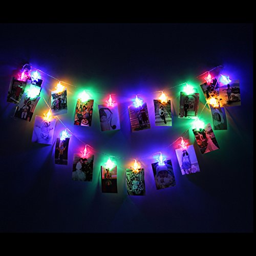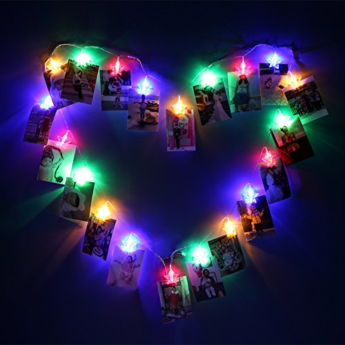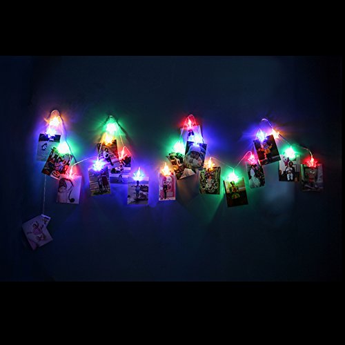 Photo clips string lights by JING CE Battery Powered,20 LED Multicolor for Bedroon Wedding Party Christmas Propose Indoor Home Decor Lights for Hanging Photos, Cards, Memos and Artwork (muti-color)