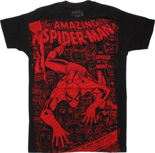 Product DescriptionThe 100% cotton Spiderman #100 Cover Black 30 Single T-Shirt begs the question...the SPIDER OR THE MAN? From Marvel Comics.0