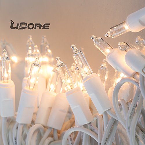 LIDORE 100 Counts Super Bright Clear Mini Christmas tree Lights. White Wire Best Gift for Decoration. End to End Connection. Set of 100
