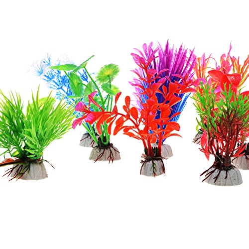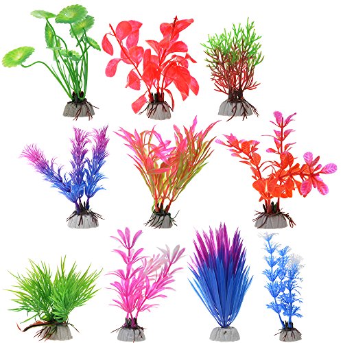 COSMOS 10 PCS Color Aquarium Fish Tank Decorative Plastic Plants , Artificial Water Plants, RANDOM colors