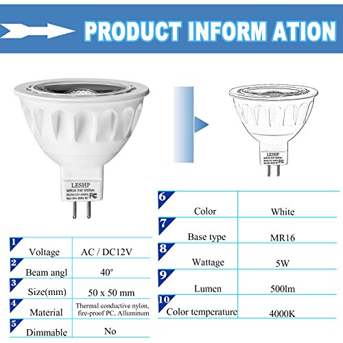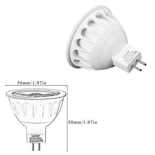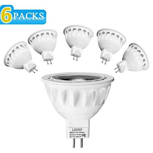 (Pack of 6) LESHP MR16 LED Spotlight Recessed Landscape Track Lighting Flood Bulbs Bi Pin GU5.3 Base AC/DC12V 5W 50 Watt Halogen Replacement 4000K 40° Beam Angle Not Dimmable Natural Daylight