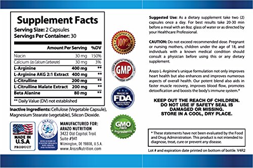★ EXTRA STRENGTH L ARGININE - Combining the power duo of amino acid Arginine Alpha Ketoglutrate (AKG) with Citrulline, plus Niacin and Calcium! Our super charged formula packs the 5 best NO ingredients for heart health.