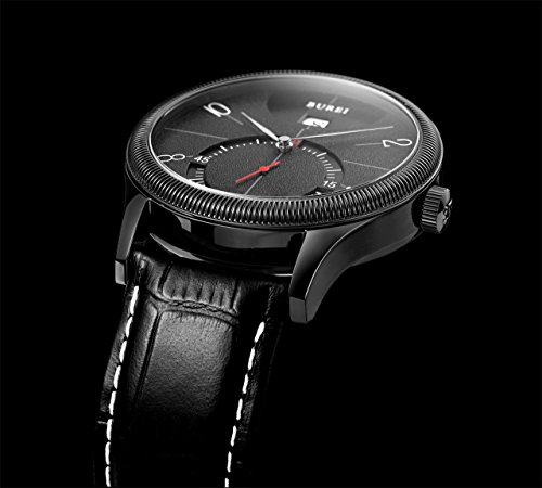 -. Title : BUREI Men's Stainless Steel Watch with Black Leather Strap and Black Face