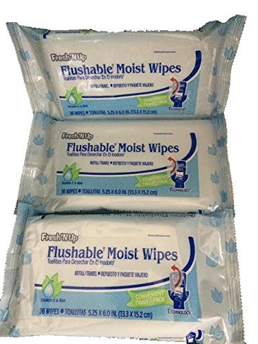 -. Title : Fresh' N Up Flushable Moist Wipes with Vitamin E & Aloe-Total 108 Wipes-3 Packages