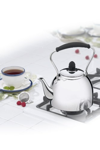 Designed for professional performance, top-rated for home use, the Cuisinart 2-Quart Whistling Kettle Classic has a corrosion-proof 18/10 stainless steel interior and gleaming 18/10 polished exterior. A solid aluminum encapsulated disc in the base ensures quick and even heat distribution. Once the water reaches boiling point, the specially designed knob on the lid will whistle to alert you. The curved stainless steel handle with a non-slip cushioned handle grip make for safe and easy pouring.Feature